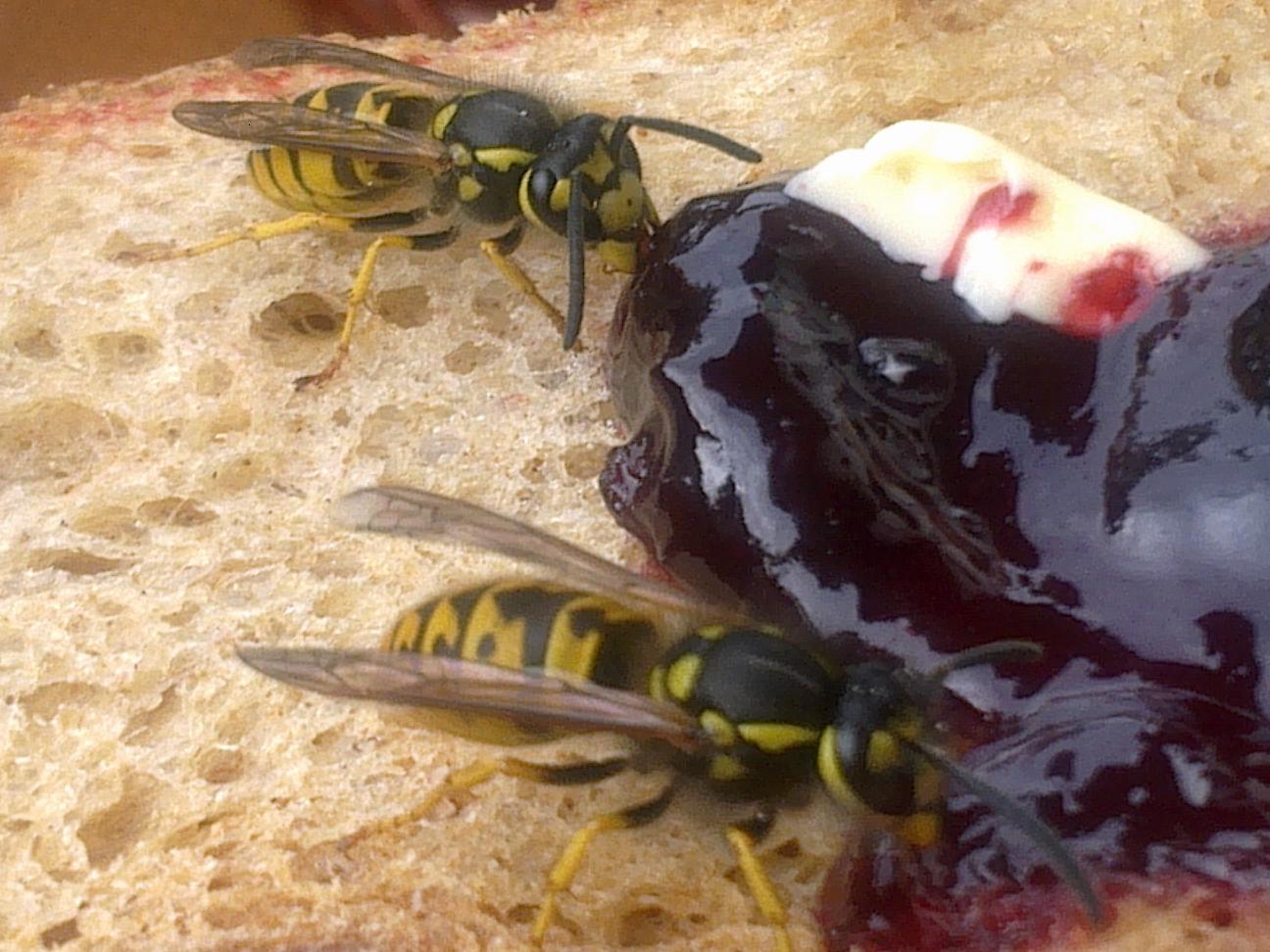 Gäste am Frühstückstisch beim Marmeladendiebstahl